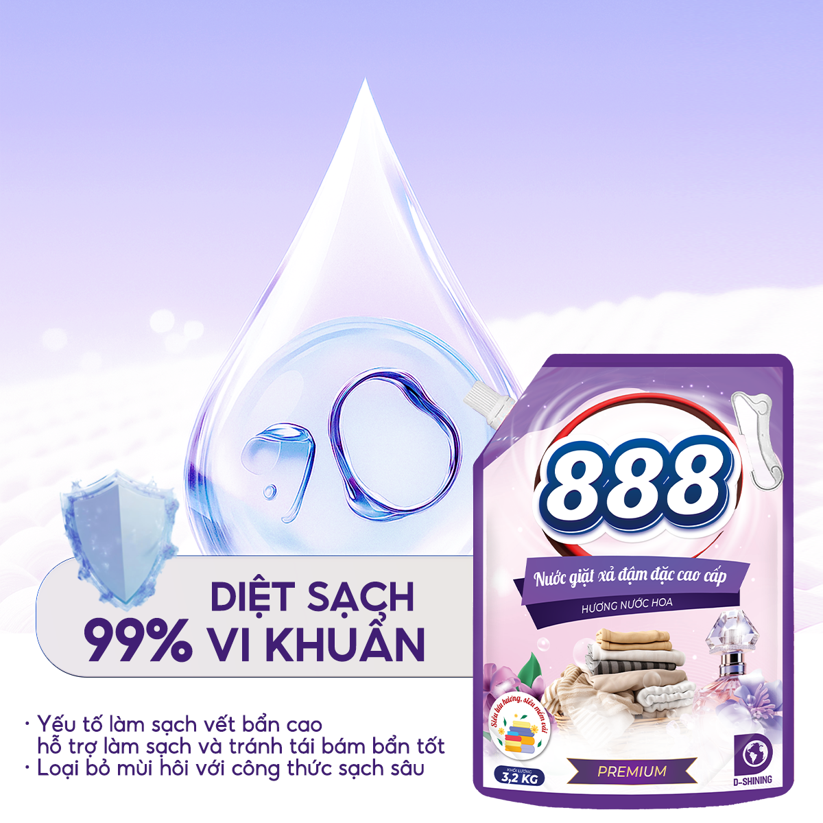 🌟 Nước giặt xả 888 là sản phẩm đột phá mới từ D-Shining, mang lại khả năng lưu hương siêu lâu và mềm vải vượt trội, giúp quần áo của bạn luôn thơm ngát và mềm mại sau mỗi lần giặt.